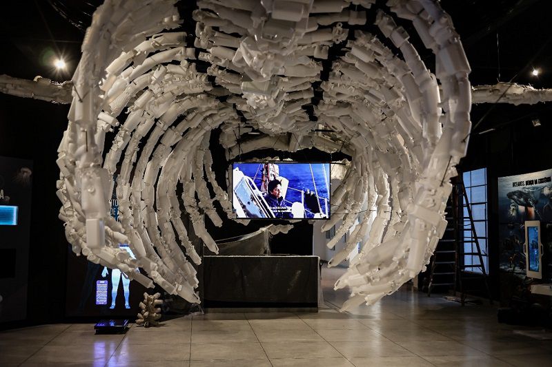 Uma das atrações do Museu é a escultura de um esqueleto de uma baleia azul, com 23 metros de comprimento, construída com mais de 40 mil itens de embalagens plásticas. Além disso, há um mapa mundi, com mais de 90 camadas de relevo da Terra e projeções em vídeo que abordam temas como o deslocamento humano sobre os mares, os lixos nos oceanos e os Rios Voadores da Amazônia.